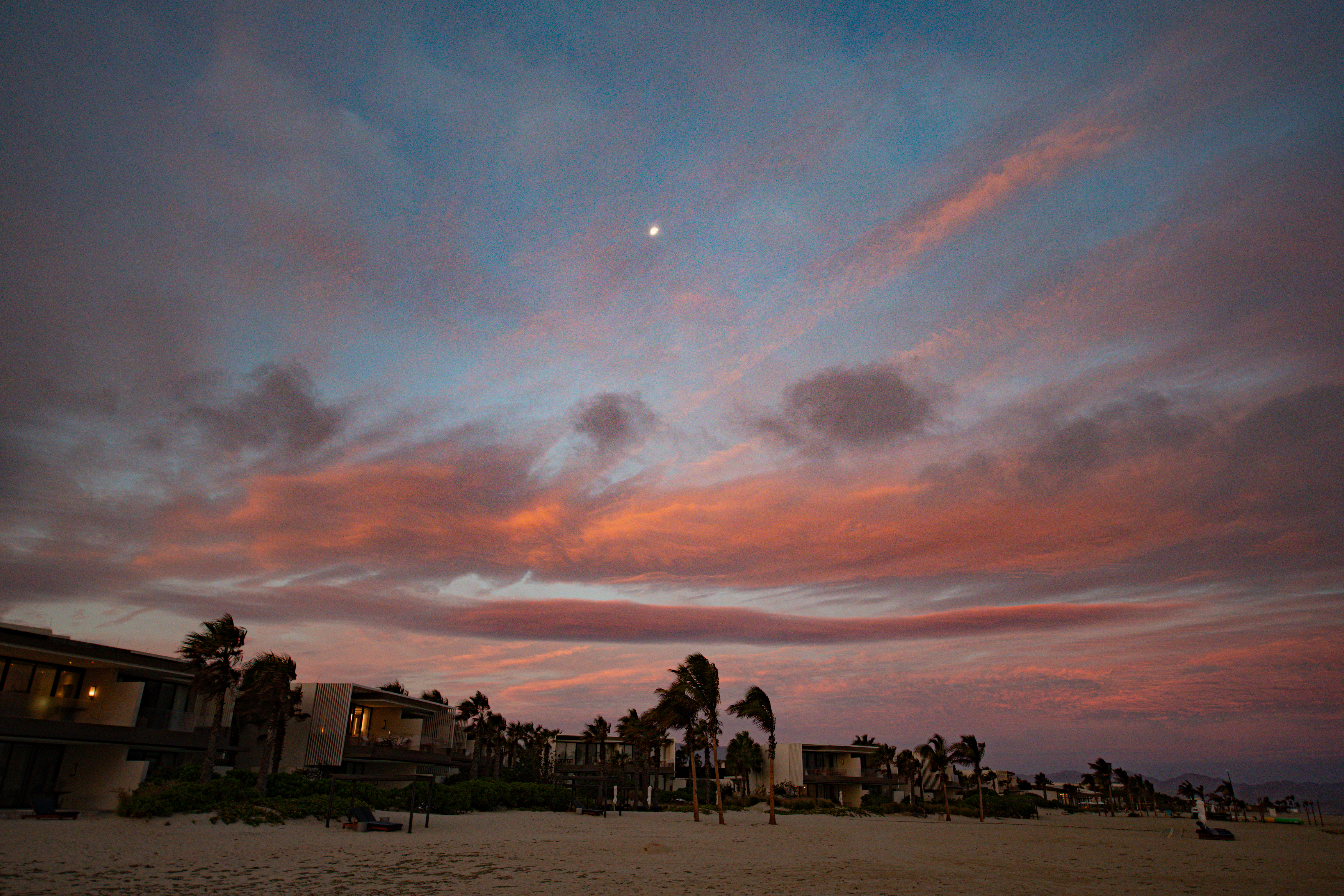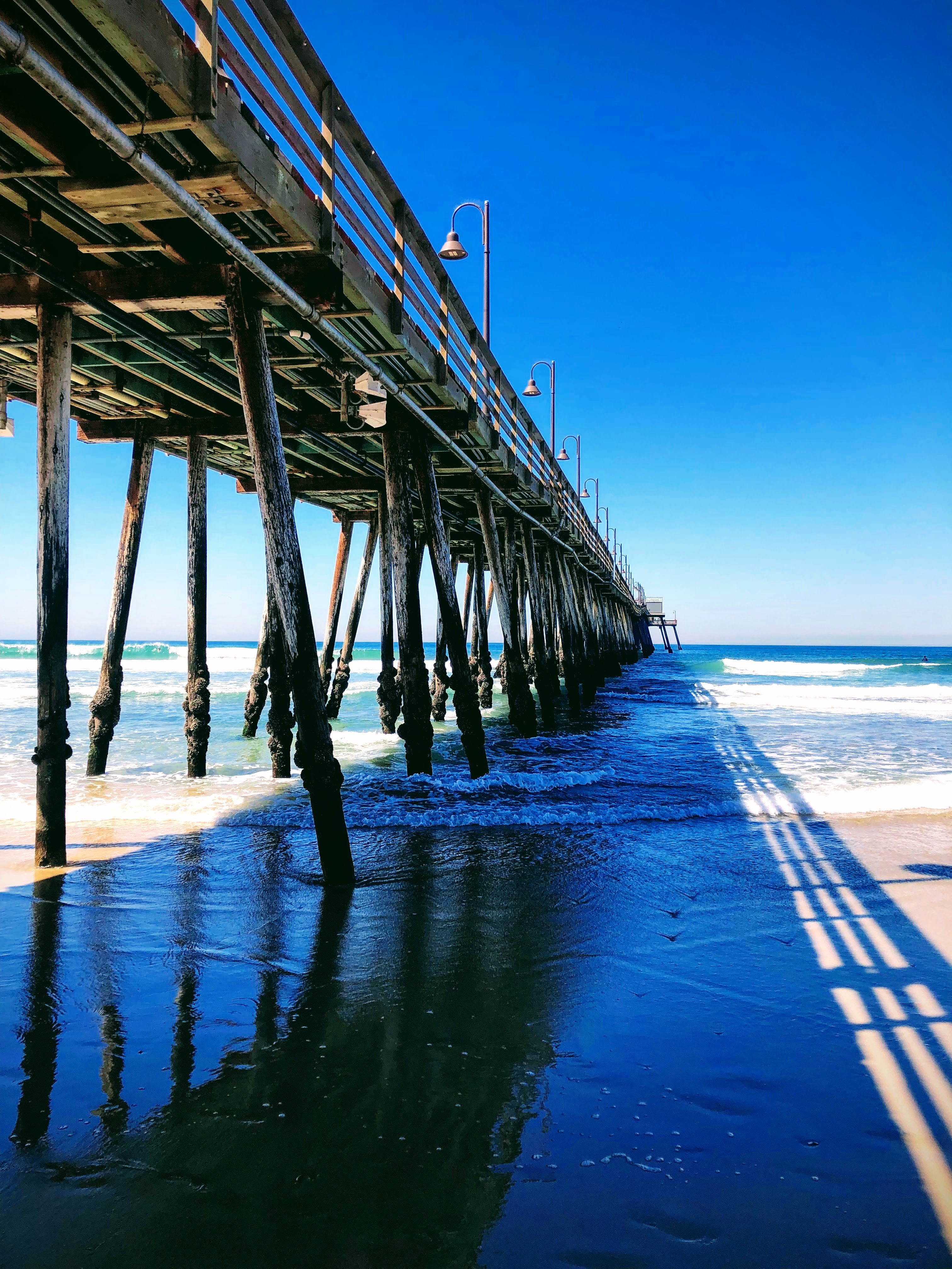 Sunset cliffs of San Diego, crystal-clear Caribbean waters off St. Maarten and St. Thomas, the Sea of Cortez at East Cape Mexico, and dramatic pier architecture reflected in wet sand. Coastal landscapes spanning the Pacific, Caribbean, and Gulf — each defined by the unique quality of light where land meets water.